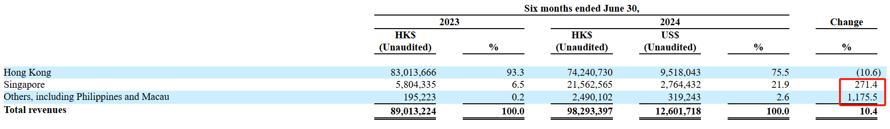 香港市场收入下滑拖累总营收表现